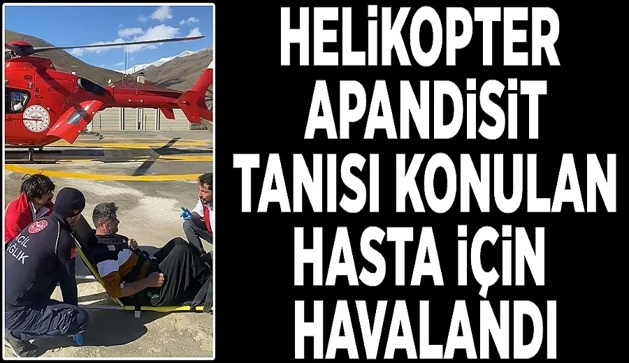 Van'ın Bahçesaray ilçesinde apandisit tanısı konulan 36 yaşındaki hasta ambulans helikopterle Van'a sevk edildi.