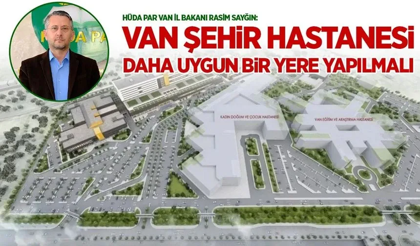 HÜDA PAR Van İl Başkanı Rasim Sayğın, haftalık basın toplantısında kentin önemli sorunlarını gündeme taşımaya devam ediyor. Bu haftaki basın açıklamasında Van'a yapılması planlanan 800 yataklı Şehir Hastanesi ve diğer sağlık yatırımlarına dikkati çeken Sayğın, hastanenin mevcut planlanan yerinden farklı bir noktaya inşa edilmesi gerektiğini vurguladı.