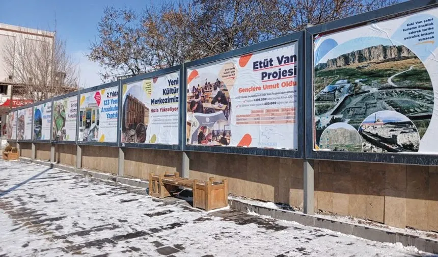 Yine billboard reklam afişlerinde Etüt Van projesi yer alıyor. Bu proje ile kentin akademik başarısının en üst sıralara çıkarılmasının hedeflendiği belirtiliyor. Etüt Van projesi ile öğrencilerin farklı okullardan öğretmenler ile ders işleme imkanı bulduğu, seviye belirleme sınavları ile sınıfları belirlenen öğrencilere ücretsiz kaynak kitap desteği sağlandığı, her ay en az iki kere yapılan deneme sınavları ile öğrencilerin seviyelerinde yükselişlerin istatistikler ile takip edildiği vurgulanıyor. Etüt Van Projesi kapsamında geçen yıl bin 841 öğretmen tarafından LGS ve YKS'ye giren 17 bin 443 öğrenciye 295 kurs merkezinde eğitim verildiği ve ücretsiz materyal desteği sağlandığı, 2024-2025 eğitim öğretim döneminde de devam eden Etüt Van projesi kapsamında, bin 444 öğretmenin, 193 kurs merkezinde ücretsiz materyal desteği sağlanan 12 bin 934 öğrenciye eğitim verdiği ifade ediliyor.