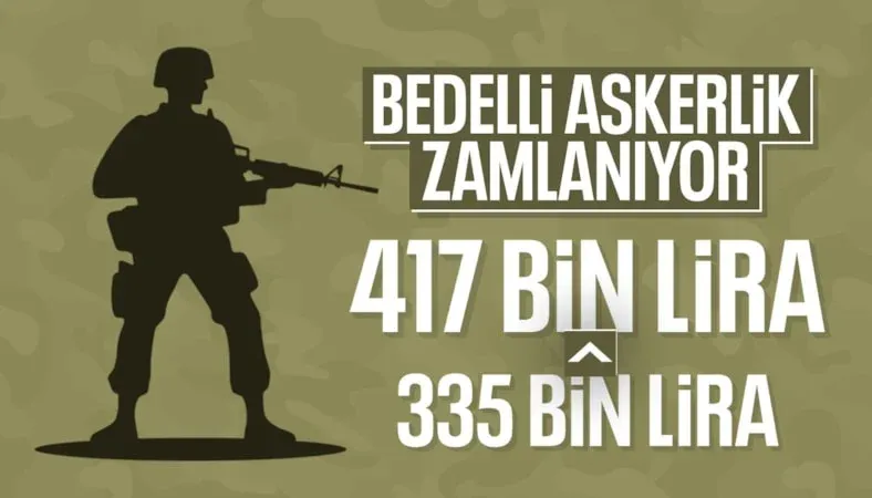Böylece 333 bin 89 TL olan bedelli askerlik bedeli, yüzde 25,2 artışla 417 bin TL'ye yükseltilecek.