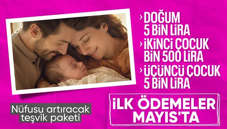 Doğum destek ödemeleri kapsamında ilk doğan çocuğa; 5 bin lira tek seferlik destek yapılacak.