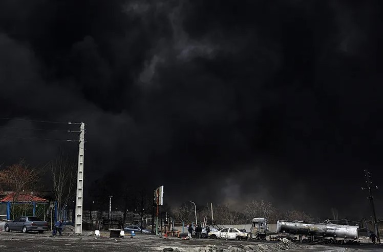 Sabah saatlerinde ayrıca petrol depolama tesislerindeki yangın nedeniyle Tahran semalarını siyah bulutların kapladığı görüldü.