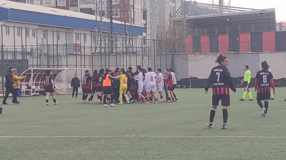TFF Kadınlar 2. Lig’de haftanın maçına futbol değil, maç sonu çıkan olaylar damga vurdu. Vangücü SK galibiyeti kutlarken, saha içindeki gerilim kavgaya dönüştü.
