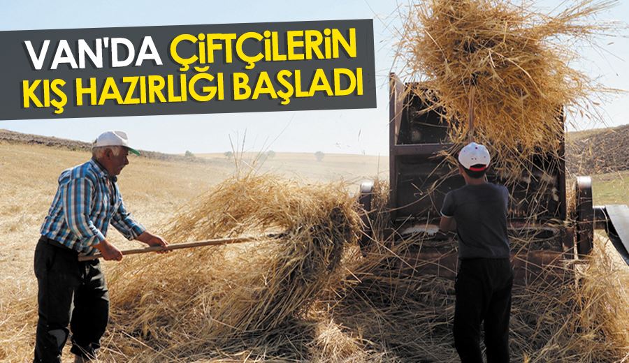 Van'da tarım ve hayvancılıkla uğraşan çiftçilerin kış hazırlıkları başladı. Tarlalarında biçtikleri ekinleri 30 dereceyi bulan sıcaklıklarda patosa vuran çiftçiler, hayvanların kışlık yem ihtiyacını karşılamaya çalışıyor.