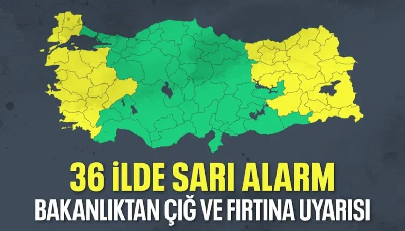 Afyonkarahisar, Ağrı, Ardahan, Artvin, Aydın, Balıkesir, Batman, Bayburt, Bingöl, Bitlis, Bursa, Çanakkale, Denizli, Diyarbakır, Edirne, Erzincan, Erzurum, Giresun, Gümüşhane, Hakkari, Iğdır, İzmir, Kars, Kırklareli, Kütahya, Manisa, Muğla, Muş, Rize, Siirt, Şırnak, Tekirdağ, Trabzon, Tunceli, Uşak ve Van için sarı kodlu meteorolojik uyarı yapıldı.
