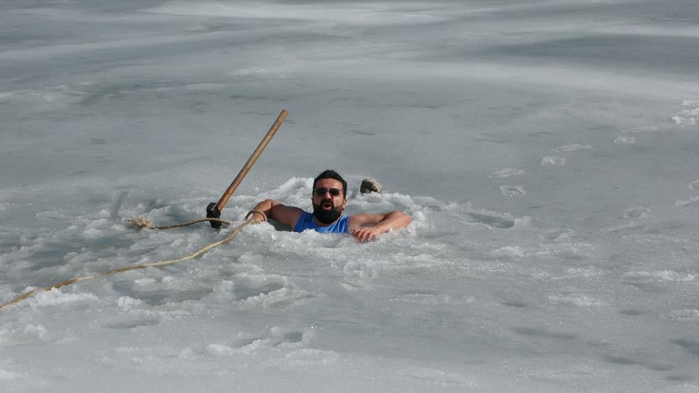 Van’da sıra dışı etkinlikleriyle tanınan maceracı bir öğretmen, barajdaki suyun buz tutmuş yüzeyini kırarak suya girdi. Balık avlamak yerine buzlu suyun içinde çay içen öğretmen, hem sağlıklı yaşama hem de kentin kış turizmine dikkat çekti.