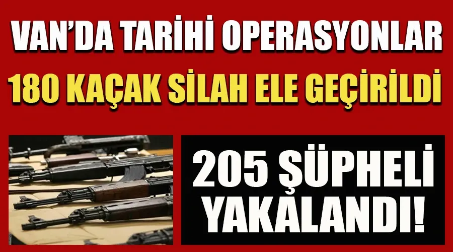 Van'da düzenlenen silah kaçakçılığı operasyonları kapsamında 21'i AK-47 Kaleşnikof olmak üzere toplam 180 kaçak silah ele geçirildi. 205 şüpheli hakkında yasal işlem başlatılırken, bireysel silahlanmanın önlenmesi hedefleniyor.