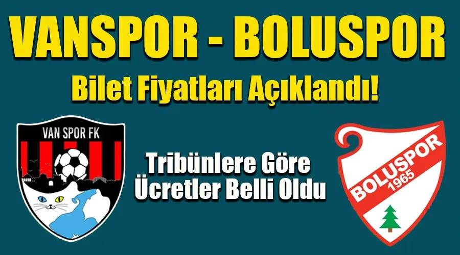 Vanspor Futbol Kulübü'nün yaptığı resmi açıklamaya göre, karşılaşma için belirlenen bilet fiyatları tribün konumlarına göre değişiklik gösteriyor. En uygun fiyatlı biletler kale arkası tribününde yer alırken, misafir Boluspor taraftarları için ayrılan bölüm en yüksek ücretten satışa sunuldu.