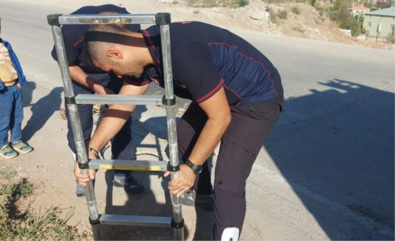 Van’da yol kenarında bulunan yağmur suyu kanalına düşen kuzu, itfaiye ekiplerinin uzun uğraşları sonucu kurtarılarak sahibine teslim edildi.