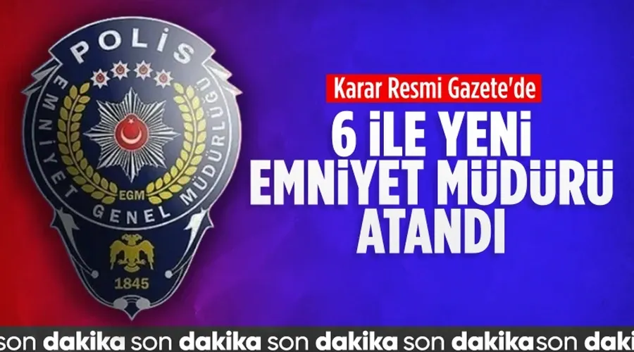 Cumhurbaşkanı Recep Tayyip Erdoğan'ın onayıyla altı ilin emniyet müdürleri değişti. Resmi Gazete'de yayımlanan kararlara göre, Iğdır, Bingöl, Bilecik, Isparta, Şanlıurfa ve Ordu illerine yeni emniyet müdürleri atandı.
