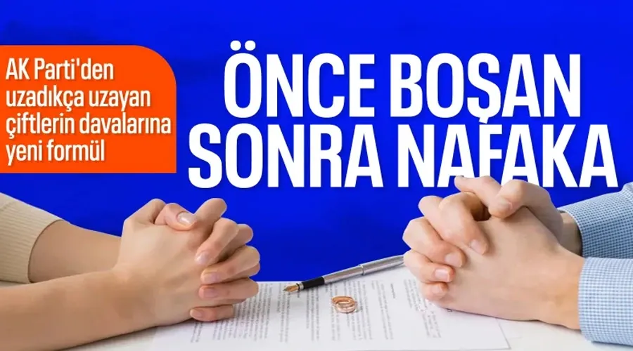 Adalet Bakanlığı'nın katkılarıyla şekillenen ve AK Parti tarafından sunulan bu yeni formül, boşanma süreçlerinin hızlanmasını ve daha az yıpratıcı olmasını amaçlıyor. Ayrılık kararını takiben, nafaka, mal paylaşımı ve velayet problemleri gibi uzama nedenleri olan konular ayrı davalar olarak ele alınacak böylece ana dava hızlı bir şekilde neticelendirilecek.