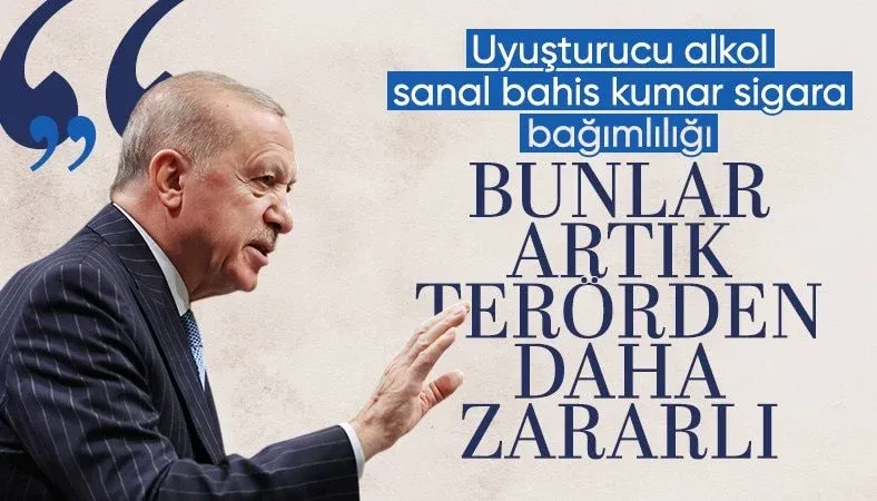 Kürsüye çıkarak önemli mesajlar veren Cumhurbaşkanı Erdoğan, gündemden düşmeyen uyuşturucu, alkol, sanal bahis konularını ele aldı.