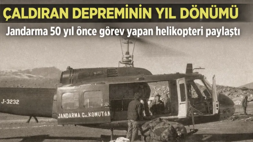 Jandarma Genel Komutanlığı, Van’ın Çaldıran ve Muradiye ilçelerini etkileyen 1976 depreminde kurtarma ve tahliye çalışmalarında görev yapan jandarma helikopterine ait tarihi görüntüleri, depremin 50’nci yılında kamuoyuyla paylaştı.