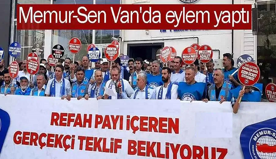 Kamu İşveren Heyeti'nin kamu görevlilerine sunduğu maaş teklifini kabul etmeyen Memur-Sen Türkiye genelinde eylem yaptı. Memur-Sen Van Temsilciliği eylemde refah payı içeren gerçekçi teklifler beklediklerini dile getirdi.