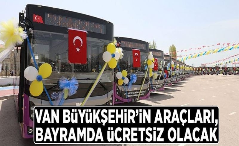 Büyükşehir Belediyesi Nisan ayı meclis toplantısında alınan karar gereği, belediyeye ait otobüsler 3 gün boyunca vatandaşa ücretsiz hizmet verecek. Bayramın birinci gününden itibaren Van ve Erciş olmak üzere 138 otobüsle 81 güzergâhtaki bin 300 kilometrelik yol ağında ücretsiz olarak hizmet verilecek.
