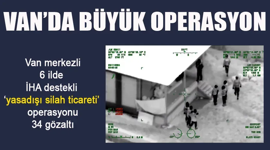 Van merkezli 6 ilde insansız hava aracı (İHA) destekli operasyonlarda çok sayıda silah ve mühimmat ele geçirilirken, olayla ilgili 34 şüpheli şahıs yakalanarak gerekli yasal işlemlere başlanıldı.