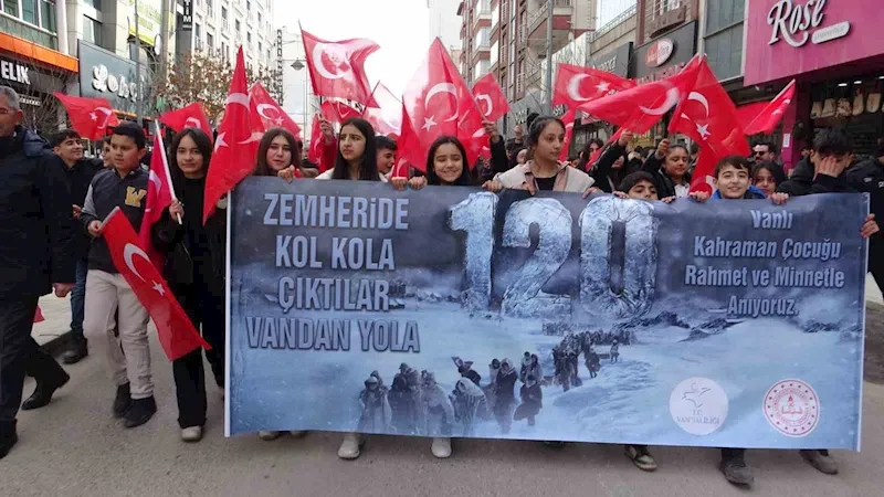 Van’da 1. Dünya Savaşı’nda Hoy cephesine cephane taşıdıktan sonra dönüş yolunda soğuktan donarak şehit düşen 120 kahraman çocuk için yürüyüş düzenlendi.