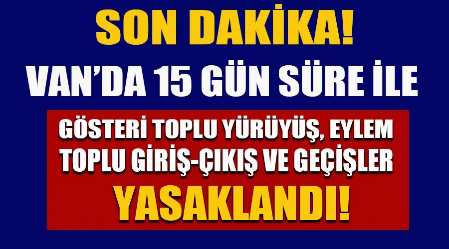 "Anayasamızda ve kanunlarda öngörülen sınırlandırma ve yasaklama şartlarını doğrudan ve açıkça oluşturduğu değerlendirilen eylemler ile saldırı olaylarının önüne geçmek, vatandaşlarımızın can ve mal güvenliklerini sağlamak, terör örgütlerinin planlarını bertaraf etmek ve bu bağlamda, milli güvenliğin sağlanması, kamu düzeni ve genel sağlığın korunması, suç işlenmesinin önlenmesi, temel hak ve özgürlükler ile başkalarının hak ve özgürlüklerinin ve genel asayişin devamının temini ile şiddet olaylarının yaygınlaşmasının önlenmesi amacıyla; Van ili coğrafi sınırları içerisinde 11.02.2025 tarihinden geçerli 25.02.2025 tarihi de dahil olmak üzere (15) gün süre ile, Valilik ve Kaymakamlık makamlarınca uygun görülenler hariç olmak üzere, 2911 Sayılı Toplantı ve Gösteri Yürüyüşleri Kanunu hükümlerine göre düzenlenecek gösteri yürüyüşü, açık hava toplantıları ve kapalı yer toplantıları, basın açıklaması, oturma eylemi ve anket yapılması, çadır ve stant kurulması/açılması, imza kampanyası düzenlenmesi, bildiri, broşür ve el ilanı dağıtılması ve her türlü protesto eylemi şeklindeki faaliyetler 2911 Sayılı Toplantı ve Gösteri Yürüyüşleri Kanunu ve 5442 sayılı İl İdaresi Kanununun ilgili maddeleri doğrultusunda yasaklanmıştır.