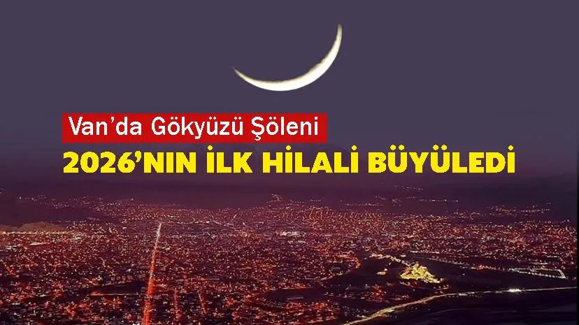 2026 yılının ilk hilal ayı, akşam saatlerinde Van semalarında etkileyici bir manzara oluşturdu. Gün batımından kısa süre sonra yükselen hilal ay, parlak ve net görünümüyle kentin birçok noktasında dikkat çekti. Hava sıcaklığının sıfırın altına düştüğü berrak kış gecesinde, ayın en zarif hali olan hilal formu, Van Gölü üzerinde süzülerek izleyenleri büyüledi. Van Ferit Havalimanı’ndan kalkan iki uçağın gün batımının ardından batı ufkunda ince bir yay şeklinde görünen hilal ayın önünden geçmesi güzel manzaraların ortaya çıkmasına neden oldu.