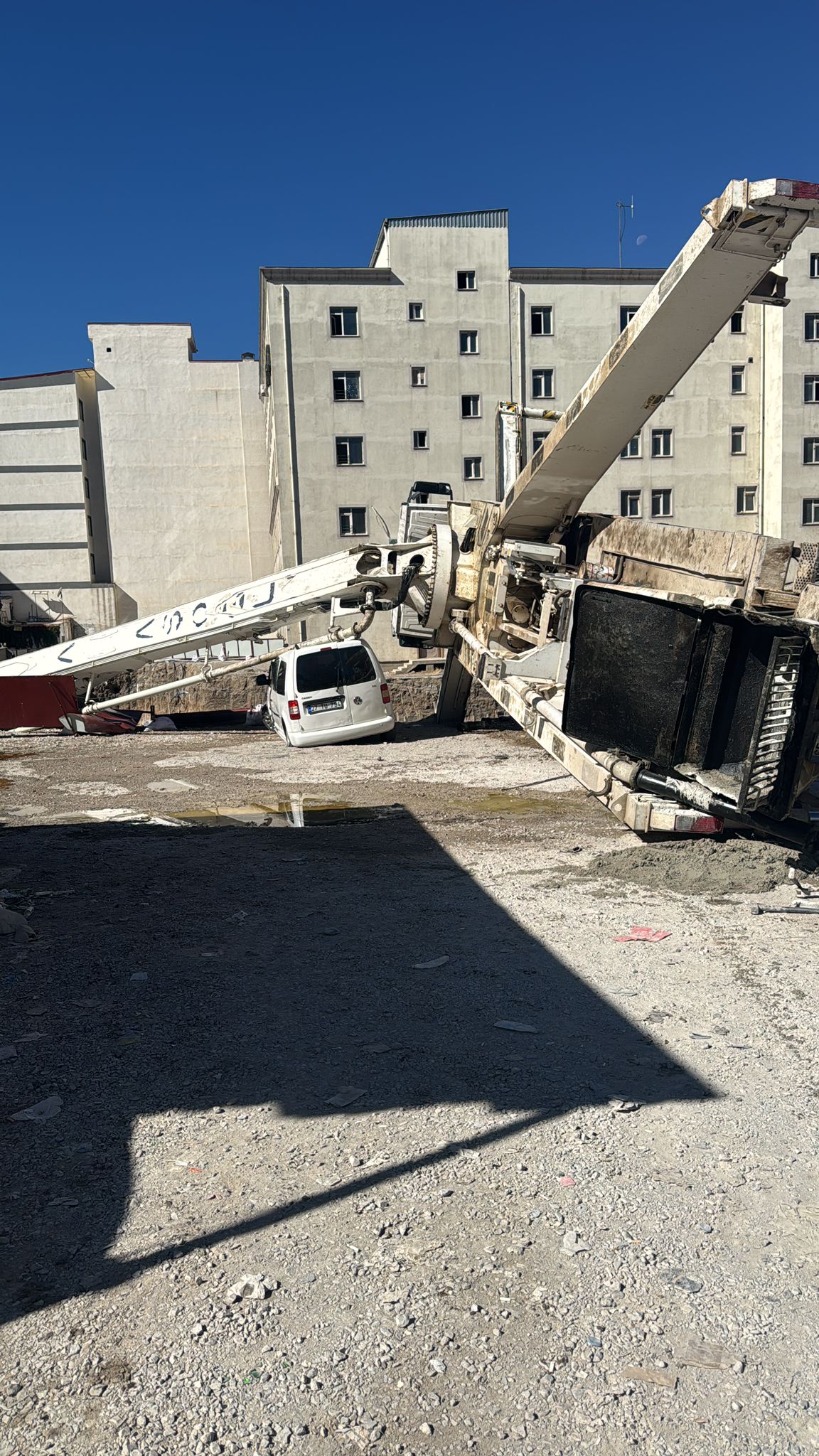Van’ın İpekyolu ilçesinde beton dökümü sırasında kontrolden çıkan bir vinç, park halindeki bir aracın üzerine devrildi.