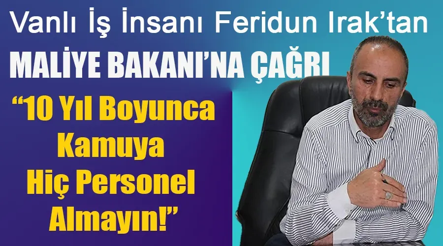 Kamu kuruluşlarında ihtiyaçtan fazla personel olduğunu ifade eden Vanlı İş İnsanı Feridun Irak, Maliye Bakanı Mehmet Sağlam'a çarpıcı bir çağrıda bulundu.